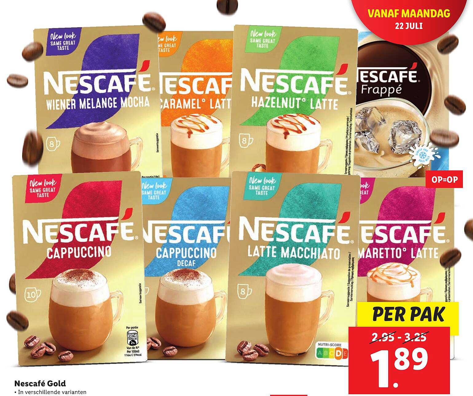 Bekijk nu de nescafé gold aanbieding in de Lidl folder. Deze aanbieding is geldig van 22-07-2024 tot en met 28-07-2024.