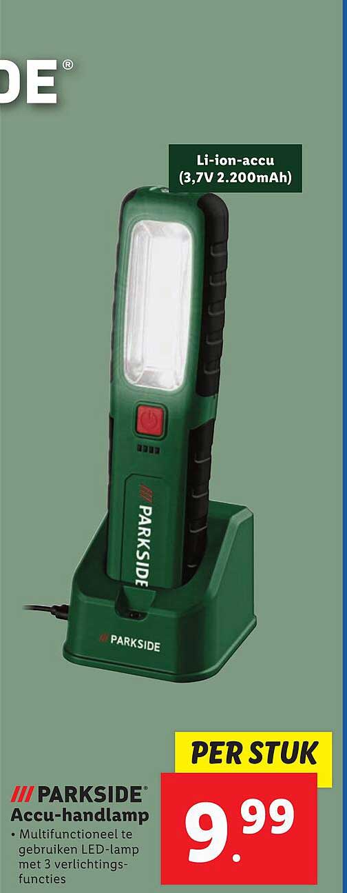 Bekijk de Parkside Accu-Handlamp aanbieding bij Lidl! Deze fantastische aanbieding is nu beschikbaar in de nieuwste Lidl folder. Profiteer van deze kans en bespaar flink op je aankoop.