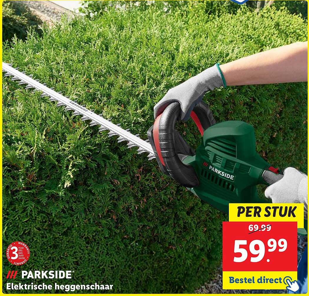 Bekijk de Parkside Elektrische Heggenschaar aanbieding bij Lidl! Deze fantastische aanbieding is nu beschikbaar in de nieuwste Lidl folder. Profiteer van deze kans en bespaar flink op je aankoop.