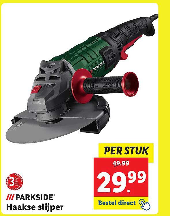 Bekijk de Parkside Haakse Slijper aanbieding bij Lidl! Deze fantastische aanbieding is nu beschikbaar in de nieuwste Lidl folder. Profiteer van deze kans en bespaar flink op je aankoop.