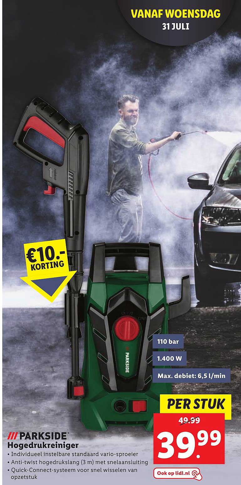 Bekijk de Parkside Hogedrukreiniger aanbieding bij Lidl! Deze fantastische aanbieding is nu beschikbaar in de nieuwste Lidl folder. Profiteer van deze kans en bespaar flink op je aankoop.