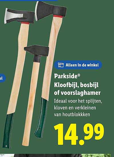Bekijk nu de Parkside® Kloofbijl, bosbijl of voorslaghamer aanbieding in de Lidl folder. Deze aanbieding is geldig van 15-10-2025 tot en met 18-10-2025.