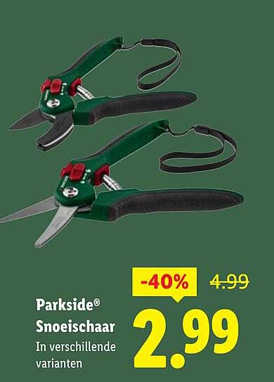 Bij FolderFeest.nl zijn we altijd op zoek naar de beste deals, en deze aanbieding uit de Lidl-folder is er zeker één om naar uit te kijken! De Parkside® snoeischaar is tijdelijk verkrijgbaar tegen een stevige korting van maar liefst 40%! Dit is het ideale moment om je tuin een opfrisbeurt te geven.