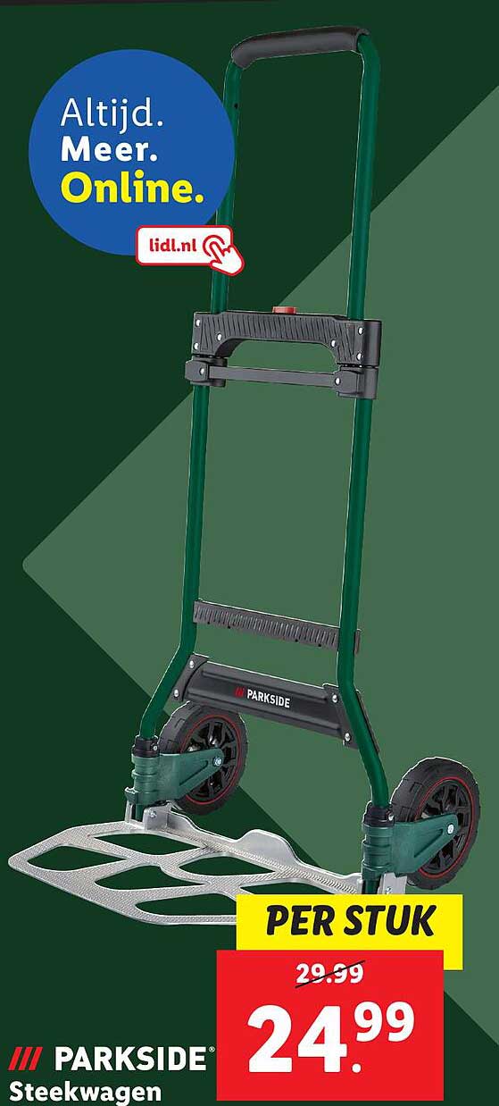 Bekijk de Parkside Steekwagen aanbieding bij Lidl! Deze fantastische aanbieding is nu beschikbaar in de nieuwste Lidl folder. Profiteer van deze kans en bespaar flink op je aankoop.