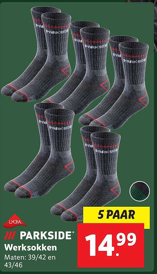 Bekijk de Parkside Werksokken aanbieding bij Lidl! Deze fantastische aanbieding is nu beschikbaar in de nieuwste Lidl folder. Profiteer van deze kans en bespaar flink op je aankoop.