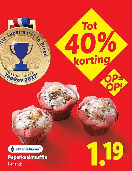 Bekijk nu de Pepperkoekmuffin aanbieding in de Lidl folder. Deze aanbieding is geldig van 17-11-2025 tot en met 23-11-2025.