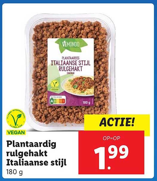 Deze week kun je het plantaardig rulgehakt Italiaanse stijl kopen voor slechts €1,99, wat een bijzonder scherpe aanbieding is. Normaal gesproken betaal je meer voor vergelijkbare producten; deze korting maakt het aantrekkelijke prijzen voor een gezondere keuze op je bord.
