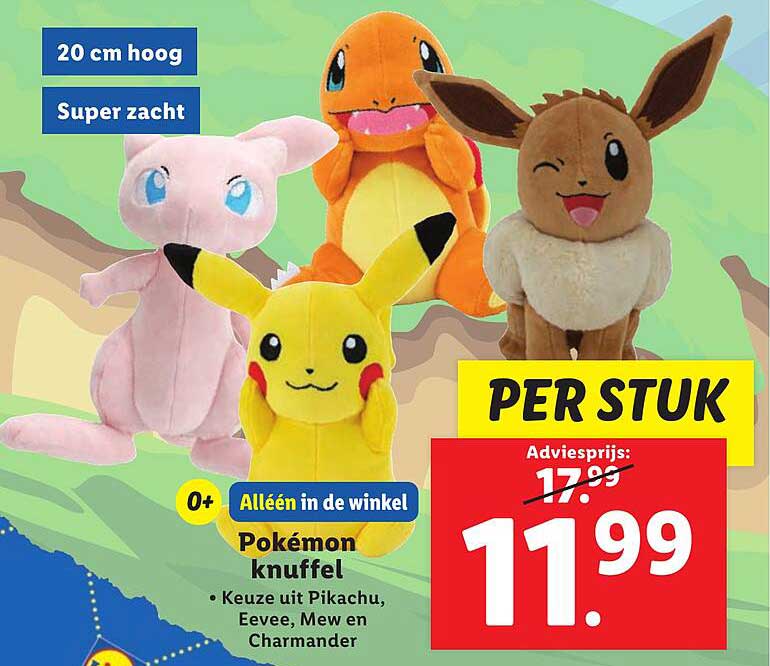 Bekijk de Pokémon Knuffel aanbieding bij Lidl! Deze fantastische aanbieding is nu beschikbaar in de nieuwste Lidl folder. Profiteer van deze kans en bespaar flink op je aankoop.