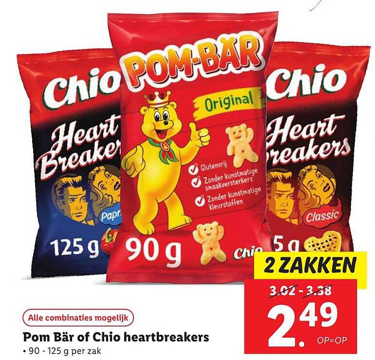 Bekijk nu de Pom Bär of Chio heartbreakers aanbieding in de Lidl folder. Deze aanbieding is geldig van 14-10-2024 tot en met 20-10-2024.