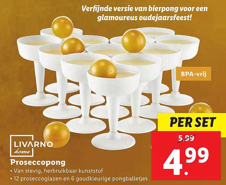 Bekijk de Proseccopong aanbieding bij Lidl! Deze fantastische aanbieding is nu beschikbaar in de nieuwste Lidl folder. Profiteer van deze kans en bespaar flink op je aankoop.