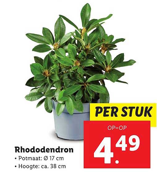Bekijk de Rhododendron aanbieding bij Lidl! Deze fantastische aanbieding is nu beschikbaar in de nieuwste Lidl folder. Profiteer van deze kans en bespaar flink op je aankoop.