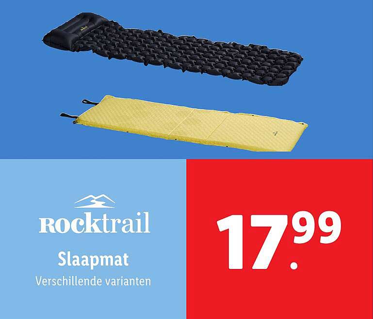 Bekijk de Rocktrail Slaapmat aanbieding bij Lidl! Deze fantastische aanbieding is nu beschikbaar in de nieuwste Lidl folder. Profiteer van deze kans en bespaar flink op je aankoop.