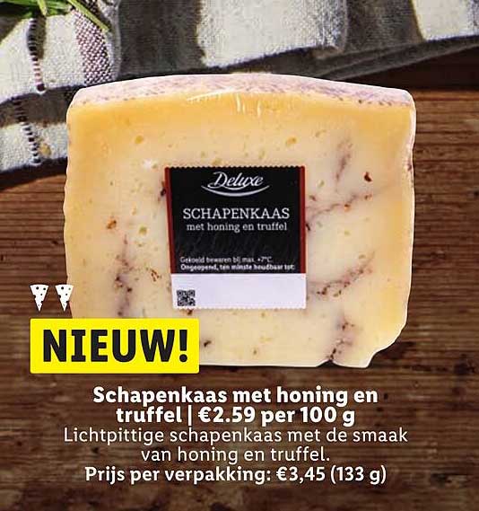 Bekijk de Schapenkaas Met Honing En Truffel aanbieding bij Lidl! Deze fantastische aanbieding is nu beschikbaar in de nieuwste Lidl folder. Profiteer van deze kans en bespaar flink op je aankoop.