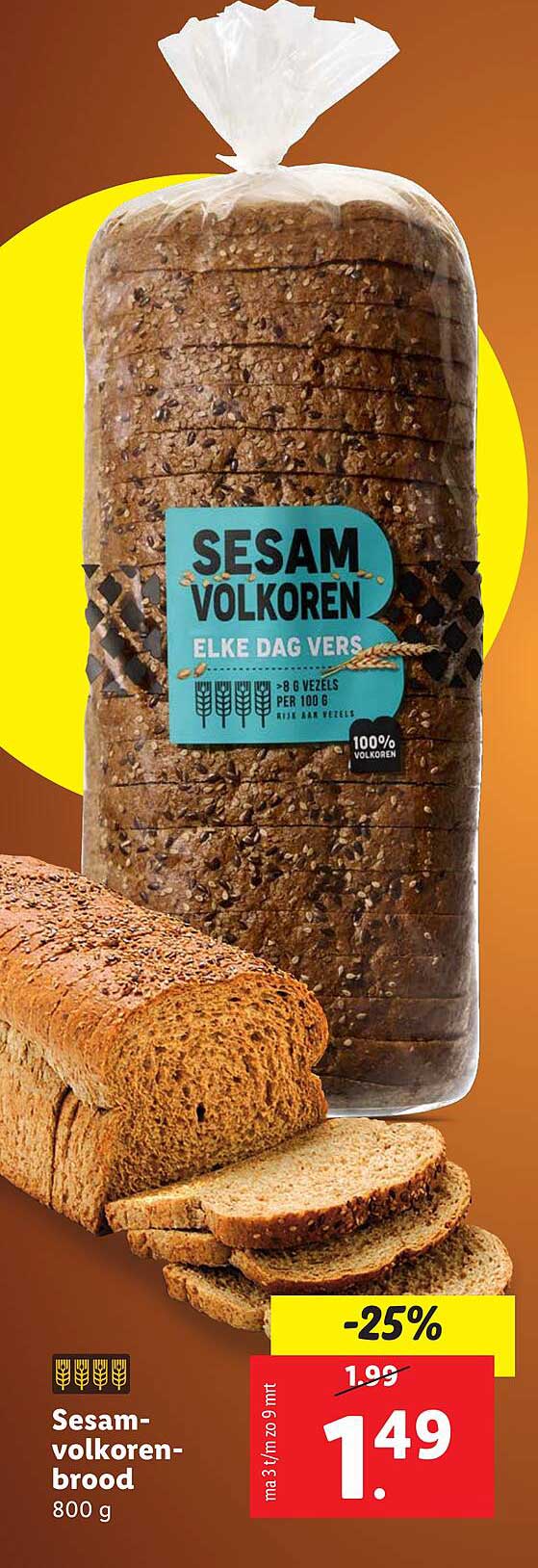Bekijk de Sesam-Volkoren-Brood aanbieding bij Lidl! Deze fantastische aanbieding is nu beschikbaar in de nieuwste Lidl folder. Profiteer van deze kans en bespaar flink op je aankoop.