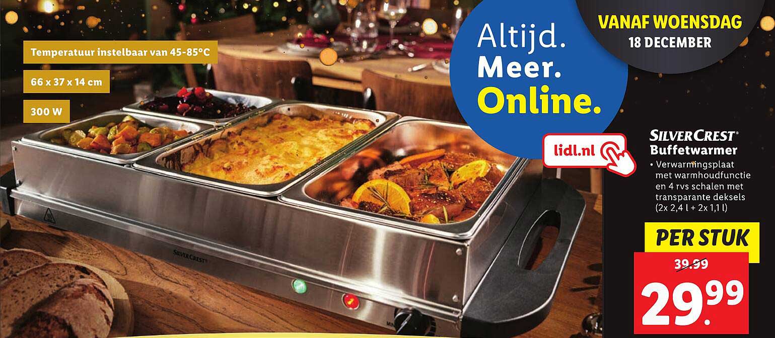 Bekijk nu de SILVERCREST® Buffetwarmer aanbieding in de Lidl folder. Deze aanbieding is geldig van 16-12-2024 tot en met 22-12-2024.