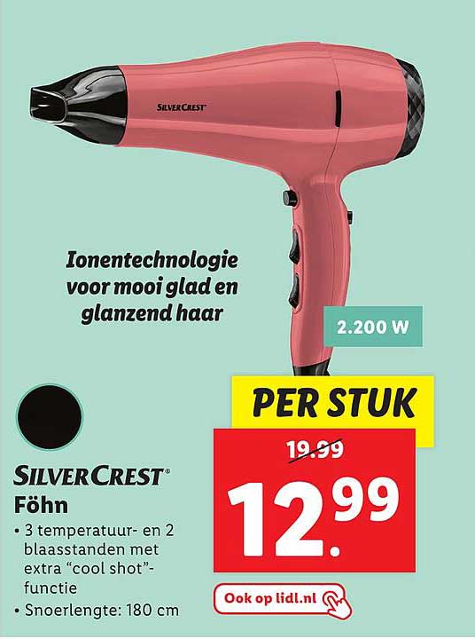 Bekijk de Silvercrest Föhn aanbieding bij Lidl! Deze fantastische aanbieding is nu beschikbaar in de nieuwste Lidl folder. Profiteer van deze kans en bespaar flink op je aankoop.