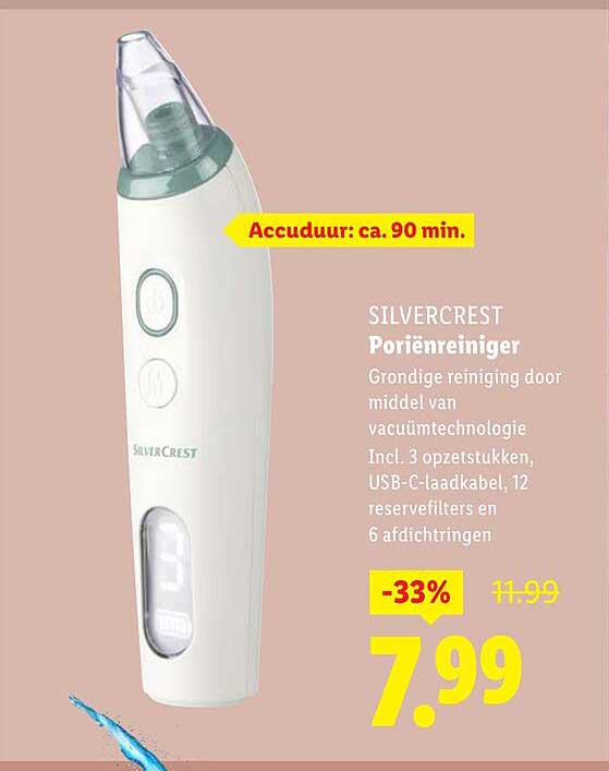 Ben je op zoek naar een effectieve manier om jouw huid diepgaand te reinigen? Dan is de SILVERCREST Poriënreiniger precies wat je nodig hebt! Dit innovatieve apparaat maakt gebruik van geavanceerde vacuümtechnologie om onzuiverheden en dode huidcellen te verwijderen, waardoor jouw huid er stralend en gezond uitziet. Met een geldige aanbieding van maar €7,99, biedt deze poriënreiniger je een professionele schoonmaakervaring in het comfort van je eigen huis.