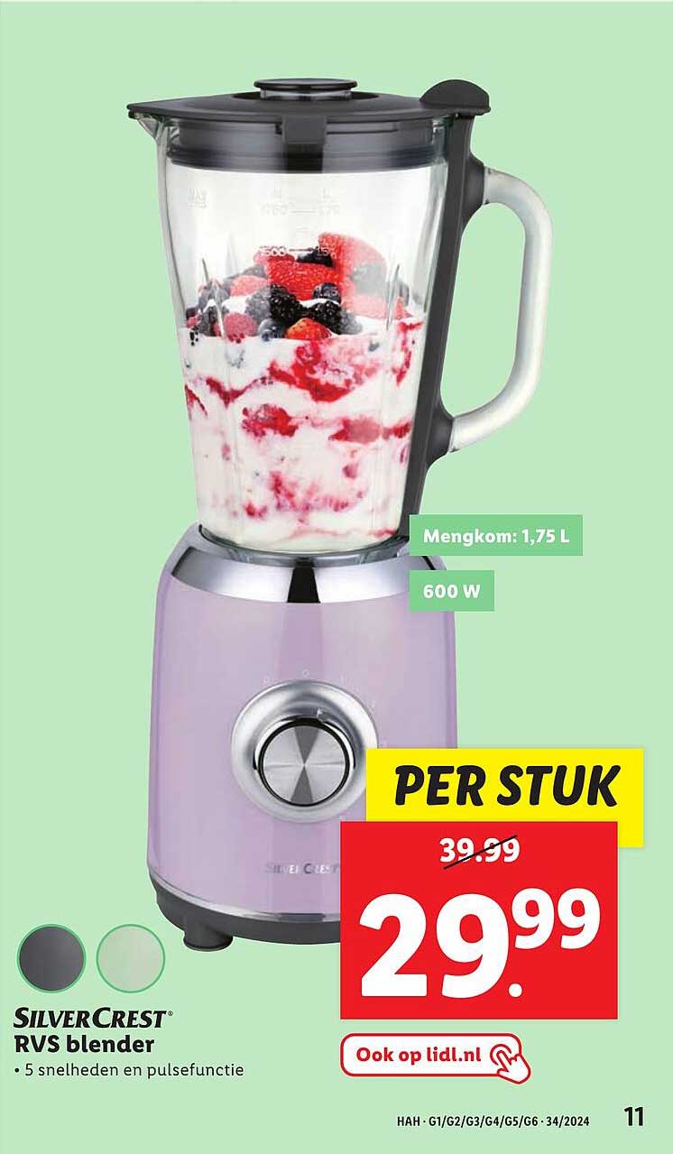 Bekijk de Silvercrest Rvs Blender aanbieding bij Lidl! Deze fantastische aanbieding is nu beschikbaar in de nieuwste Lidl folder. Profiteer van deze kans en bespaar flink op je aankoop.