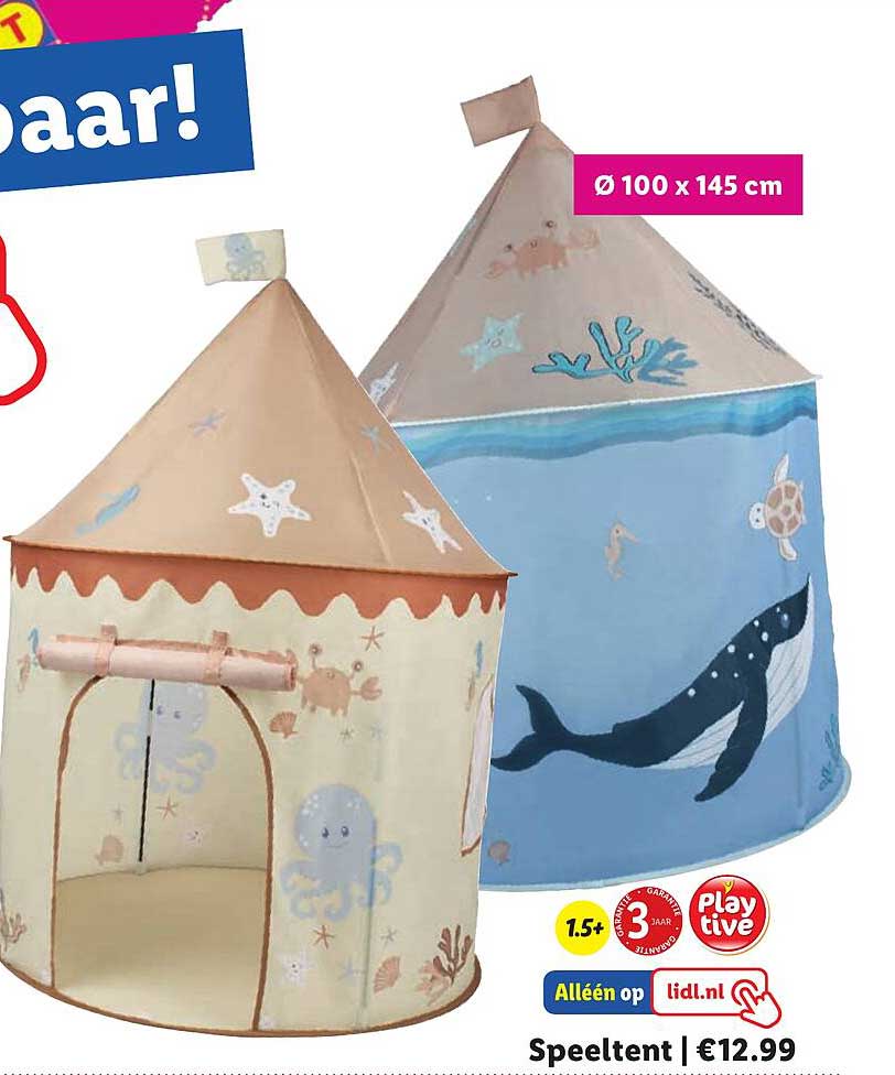 Bekijk de Speeltent aanbieding bij Lidl! Deze fantastische aanbieding is nu beschikbaar in de nieuwste Lidl folder. Profiteer van deze kans en bespaar flink op je aankoop.