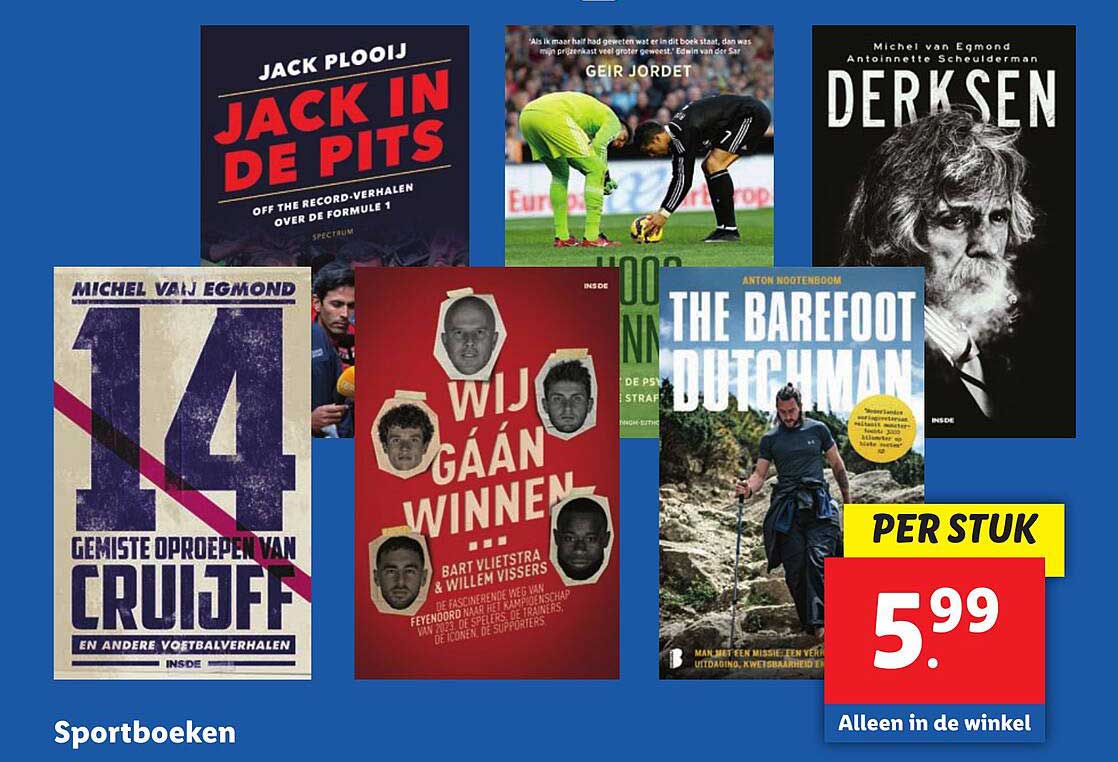 En dat is nog niet alles! Deze sportboeken zijn verkrijgbaar voor slechts €5,99 per stuk. Dit is een fantastische prijs, vooral gezien de waarde en de inhoud die je krijgt. Normaal gesproken vind je deze boeken voor een hogere prijs, dus dit is een uitgelezen kans om scherpe aanbiedingen te scoren.