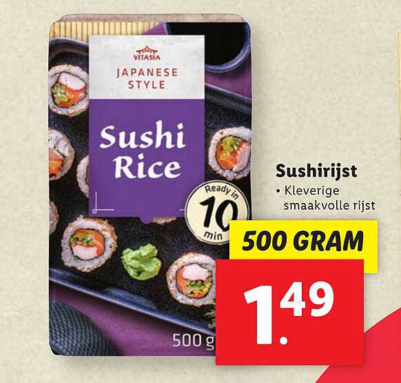 Ontdek de geweldige Sushirijst aanbieding in de nieuwste Lidl folder. Naast deze aanbieding vind je nog veel meer aantrekkelijke kortingen. Je kunt de Sushirijst eenvoudig online bestellen via de Lidl website of kopen in een winkel bij jou in de buurt.