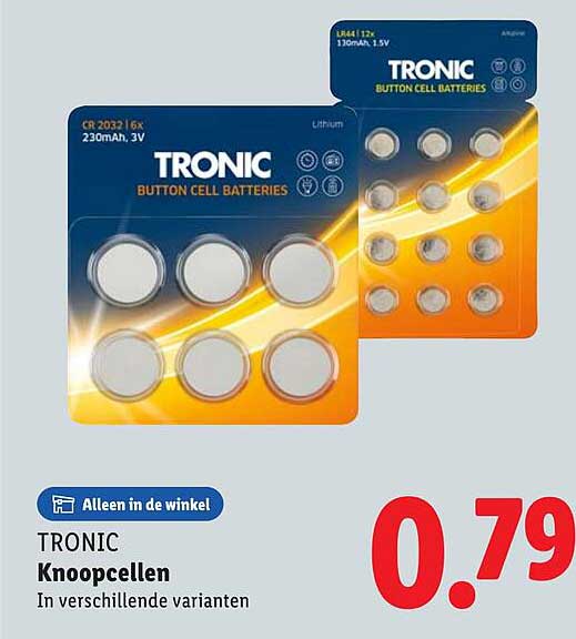 Bekijk nu de TRONIC Knoopcellen aanbieding in de Lidl folder. Deze aanbieding is geldig van 15-09-2025 tot en met 21-09-2025.