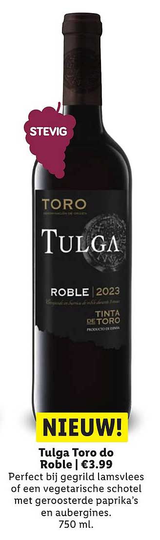 Bekijk de Tulga Toro Do Roble aanbieding bij Lidl! Deze fantastische aanbieding is nu beschikbaar in de nieuwste Lidl folder. Profiteer van deze kans en bespaar flink op je aankoop.