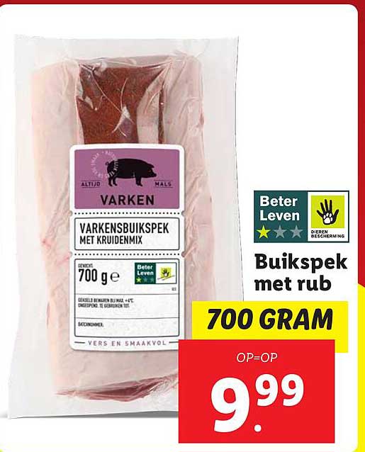 Bekijk nu de Varkensbuikspes met kruidenmix 700 gram aanbieding in de Lidl folder. Deze aanbieding is geldig van 24-03-2025 tot en met 30-03-2025.