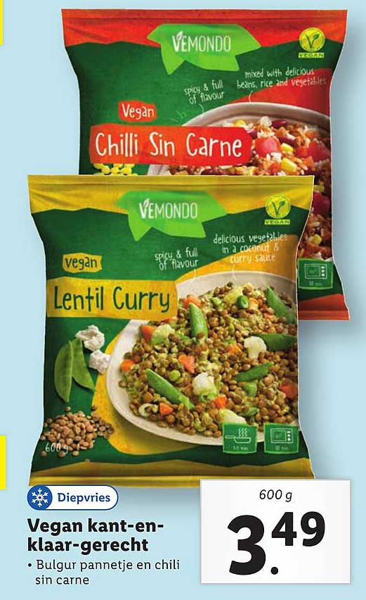 Bekijk de Vegan Kant-En-Klaar-Gerecht aanbieding bij Lidl! Deze fantastische aanbieding is nu beschikbaar in de nieuwste Lidl folder. Profiteer van deze kans en bespaar flink op je aankoop.