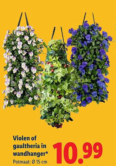 Maak je tuin, balkon of thuis gezelliger met de prachtige violen of gaultheria in wandhanger, nu verkrijgbaar bij Lidl. Dit is niet alleen een geweldige manier om kleur en leven aan je omgeving toe te voegen, maar de wandhanger zorgt ervoor dat je ruimte optimaal benut wordt. Of je nu een groene vingers hebt of gewoon wilt genieten van de schoonheid van planten, deze aanbieding is perfect voor jou!