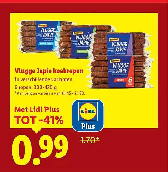 Bekijk nu de Vlugge Japie koekrepen aanbieding in de Lidl folder. Deze aanbieding is geldig van 02-10-2025 tot en met 12-10-2025.