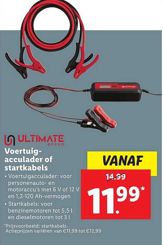Bekijk de Voertuig-Accumulator Of Startkabels aanbieding bij Lidl! Deze fantastische aanbieding is nu beschikbaar in de nieuwste Lidl folder. Profiteer van deze kans en bespaar flink op je aankoop.
