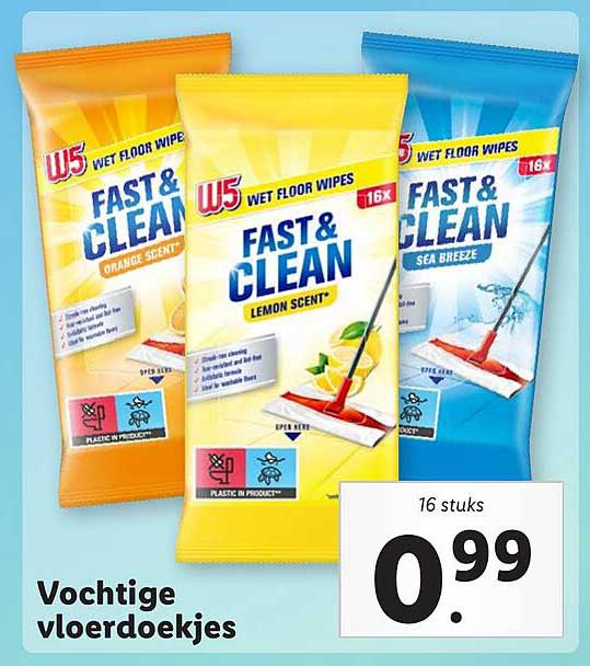 W5 Fast & Clean Vochtige Vloerdoekjes aanbieding bij Lidl
