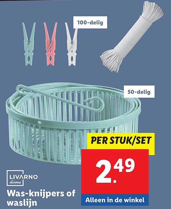Heb je altijd al een handige oplossing willen hebben voor het ophangen van je was? Dan is deze aanbieding echt iets voor jou! Bij Lidl krijg je nu de mogelijkheid om was-knijpers of een waslijn aan te schaffen voor slechts €2,49. Of je nu in een appartement woont met een klein balkon of een grotere tuin hebt, deze producten zijn onmisbaar in ieder huishouden.