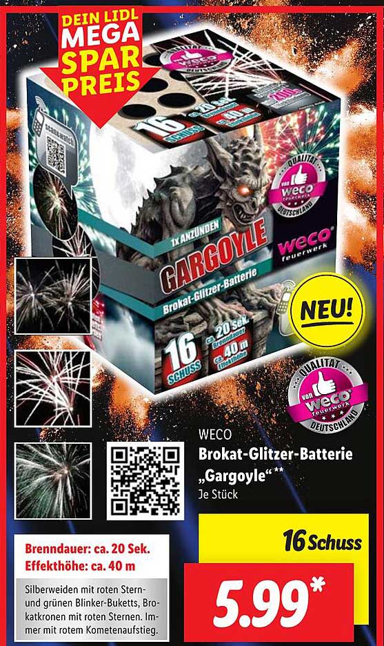 Weco Brokat-Glitzer-Batterie „Gargoyle“ aanbieding bij Lidl
