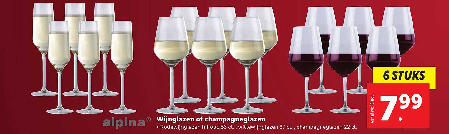 Bekijk de Wijnglazen Of Champagnenglazen aanbieding bij Lidl! Deze fantastische aanbieding is nu beschikbaar in de nieuwste Lidl folder. Profiteer van deze kans en bespaar flink op je aankoop.