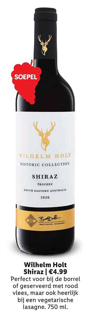 Bekijk de Wilhelm Holt Shiraz aanbieding bij Lidl! Deze fantastische aanbieding is nu beschikbaar in de nieuwste Lidl folder. Profiteer van deze kans en bespaar flink op je aankoop.