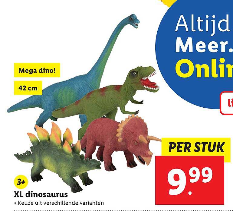 Bekijk de Xl Dinosaurus aanbieding bij Lidl! Deze fantastische aanbieding is nu beschikbaar in de nieuwste Lidl folder. Profiteer van deze kans en bespaar flink op je aankoop.