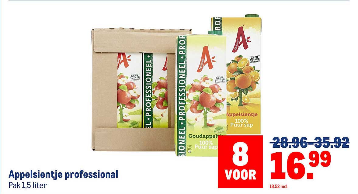 Ontdek de geweldige Appelsientje Professional aanbieding in de nieuwste Makro folder. Naast deze aanbieding vind je nog veel meer aantrekkelijke kortingen. Je kunt de Appelsientje Professional eenvoudig online bestellen via de Makro website of kopen in een winkel bij jou in de buurt.