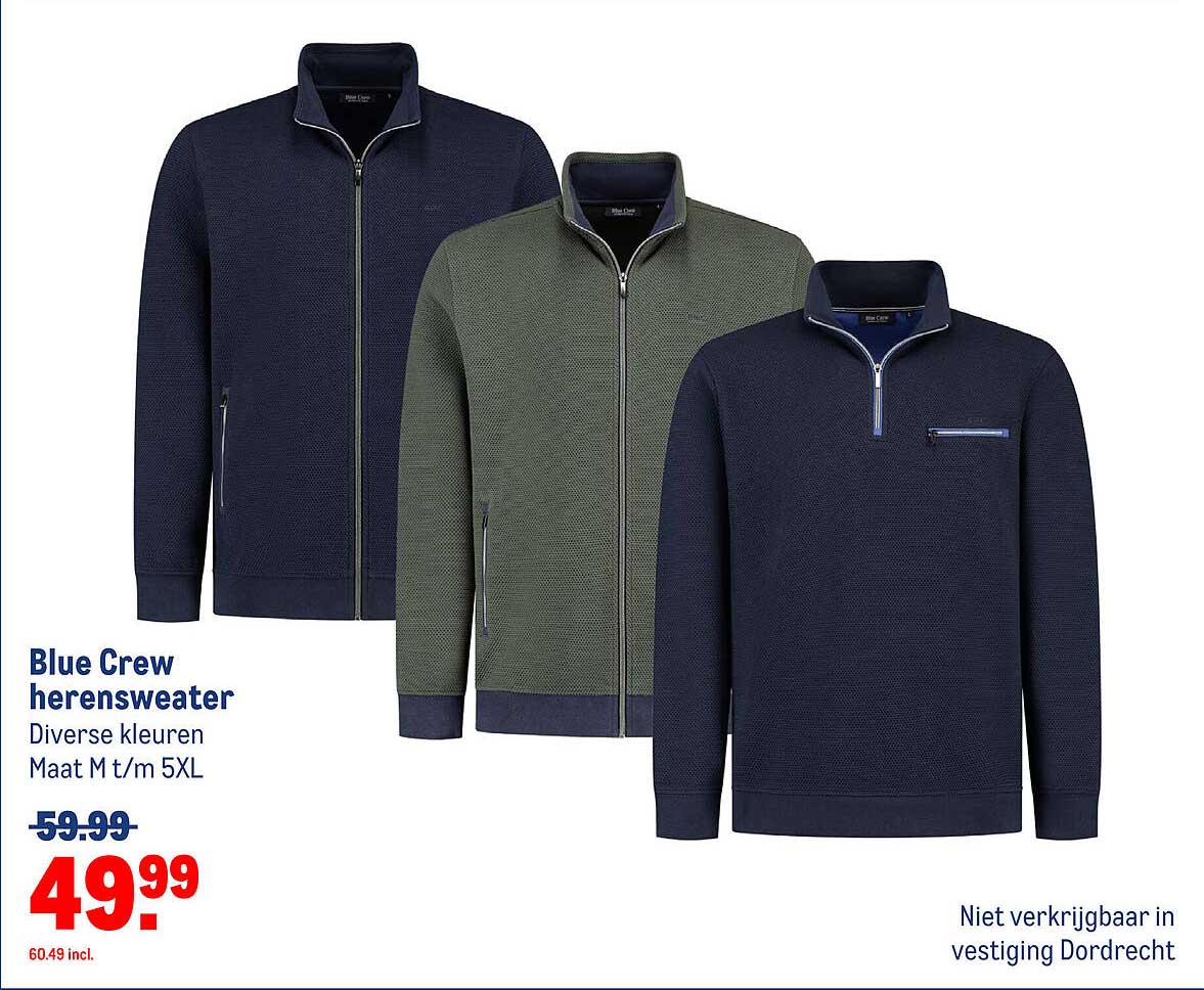 Bekijk de Blue Crew Herensweater aanbieding bij Makro! Deze fantastische aanbieding is nu beschikbaar in de nieuwste Makro folder. Profiteer van deze kans en bespaar flink op je aankoop.