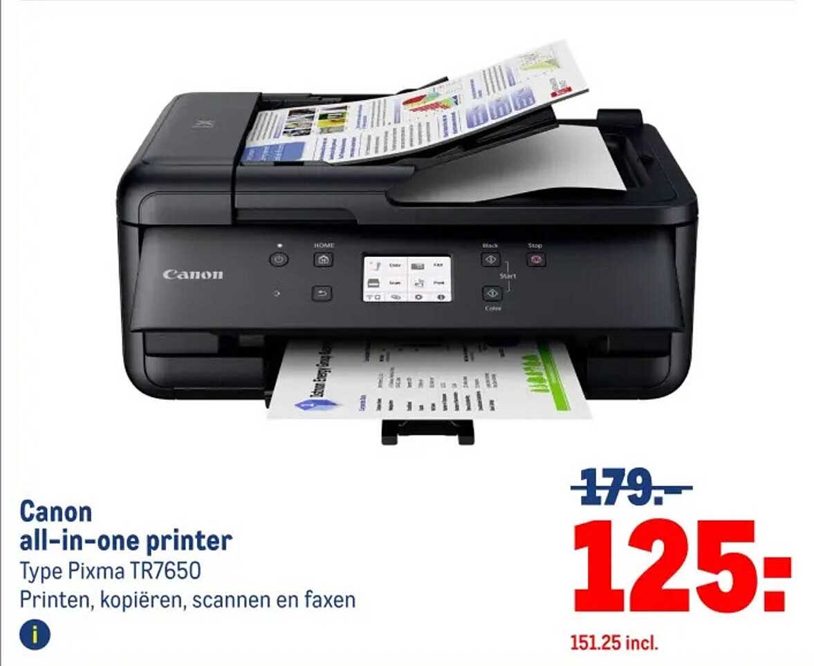 Normaal gesproken betaal je € 179, maar met deze aanbieding krijg je de Canon Pixma TR7650 voor slechts € 125! Dit betekent een besparing van maar liefst € 54,25, waardoor dit een geweldige deal is voor iedereen die op zoek is naar kwaliteit en functionaliteit zonder de bank te breken.