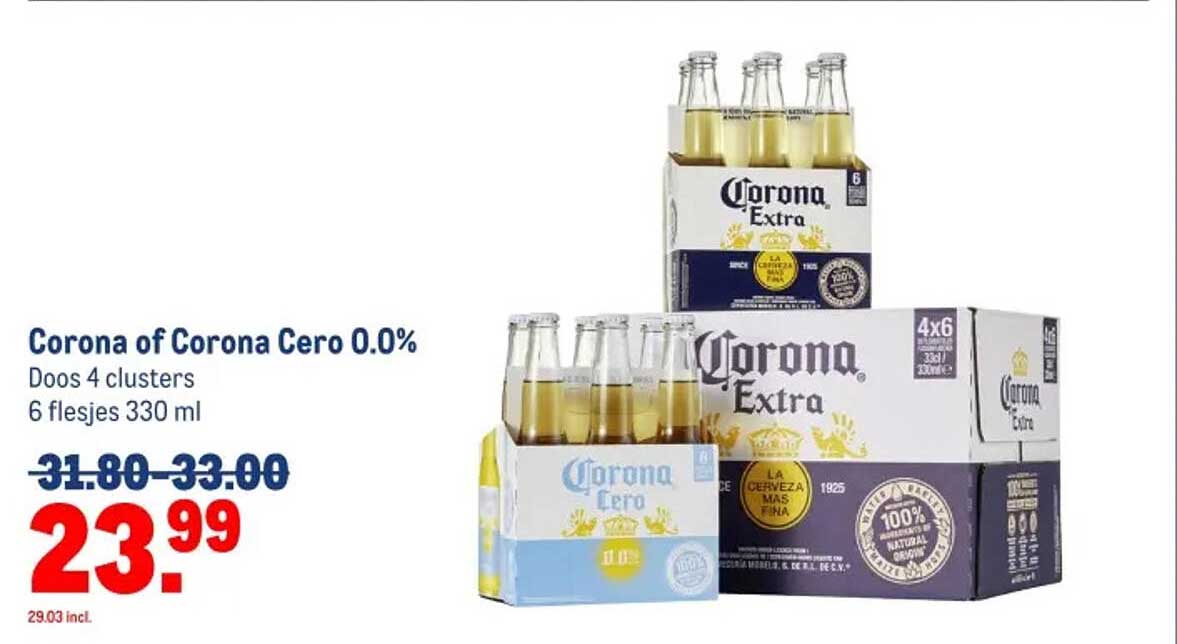 Bekijk de Corona Of Corona Cero 0.0% aanbieding bij Makro! Deze fantastische aanbieding is nu beschikbaar in de nieuwste Makro folder. Profiteer van deze kans en bespaar flink op je aankoop.