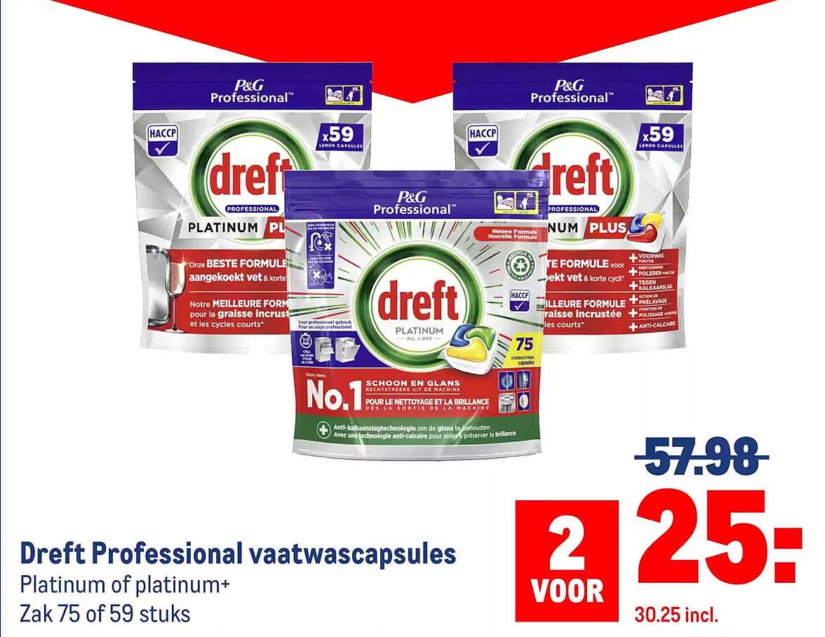 Bekijk de Dreft Professional Vaatwascapsules aanbieding bij Makro! Deze fantastische aanbieding is nu beschikbaar in de nieuwste Makro folder. Profiteer van deze kans en bespaar flink op je aankoop.