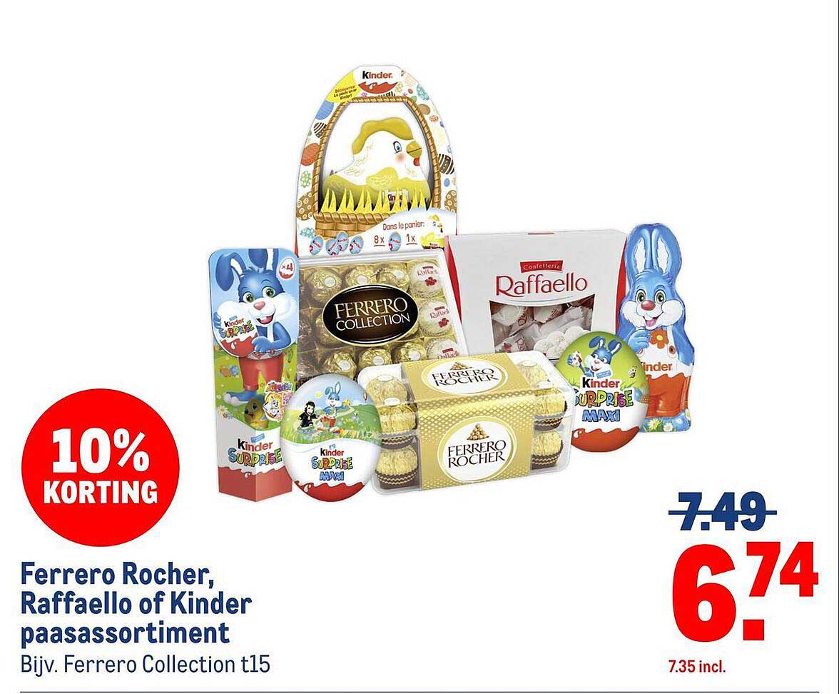 Bekijk de Ferrero Rocher, Raffaello Of Kinder Paassassortiment aanbieding bij Makro! Deze fantastische aanbieding is nu beschikbaar in de nieuwste Makro folder. Profiteer van deze kans en bespaar flink op je aankoop.