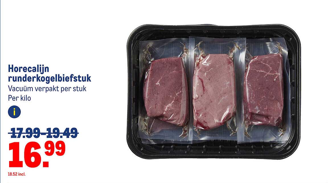 Bekijk nu de Horecalijn runderkogelbiefstuk aanbieding in de Makro folder. Deze aanbieding is geldig van 23-10-2024 tot en met 05-11-2024.