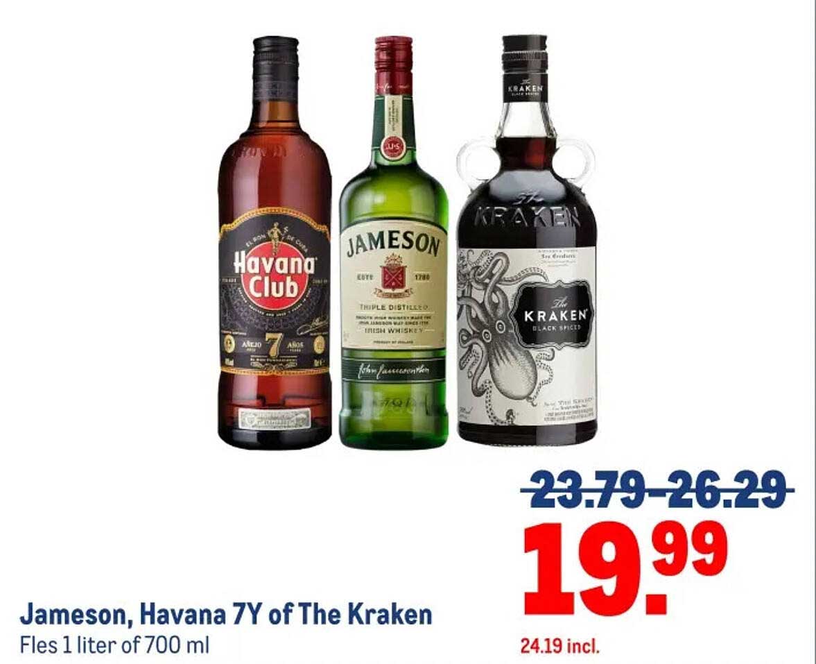 Bekijk de Jameson, Havana 7Y Of The Kraken aanbieding bij Makro! Deze fantastische aanbieding is nu beschikbaar in de nieuwste Makro folder. Profiteer van deze kans en bespaar flink op je aankoop.