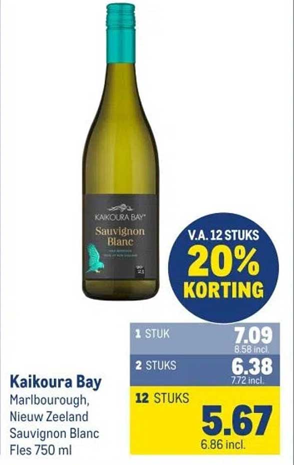 Bekijk nu de Kaikoura Bay Sauvignon Blanc aanbieding in de Makro folder. Deze aanbieding is geldig van 26-03-2025 tot en met 08-04-2025.