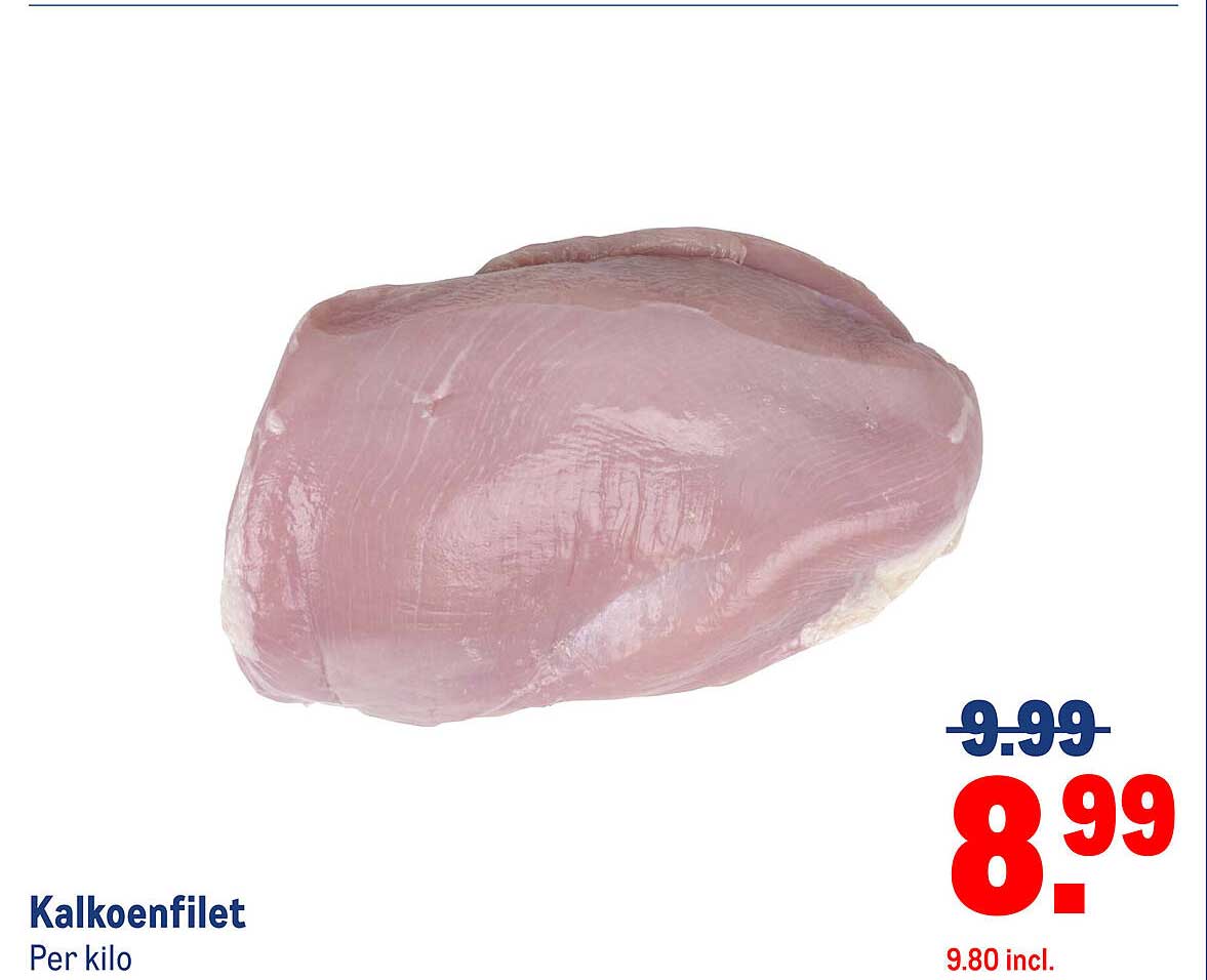 Normaal gesproken betaal je €9,99 per kilo voor kalkoenfilet, maar tijdens deze aanbieding kun je het al krijgen voor slechts €8,99! Dit is een fantastische kans om te besparen op je boodschappen terwijl je geniet van de beste kwaliteit vlees. Dat is pas slim inkopen!
