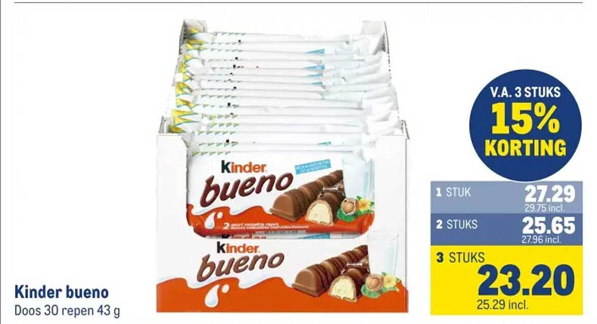 Bekijk de Kinder Bueno aanbieding bij Makro! Deze fantastische aanbieding is nu beschikbaar in de nieuwste Makro folder. Profiteer van deze kans en bespaar flink op je aankoop.