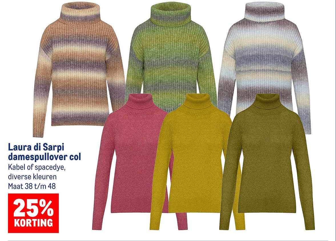 Bekijk de Laura Di Sarpi Damespullover Col aanbieding bij Makro! Deze fantastische aanbieding is nu beschikbaar in de nieuwste Makro folder. Profiteer van deze kans en bespaar flink op je aankoop.